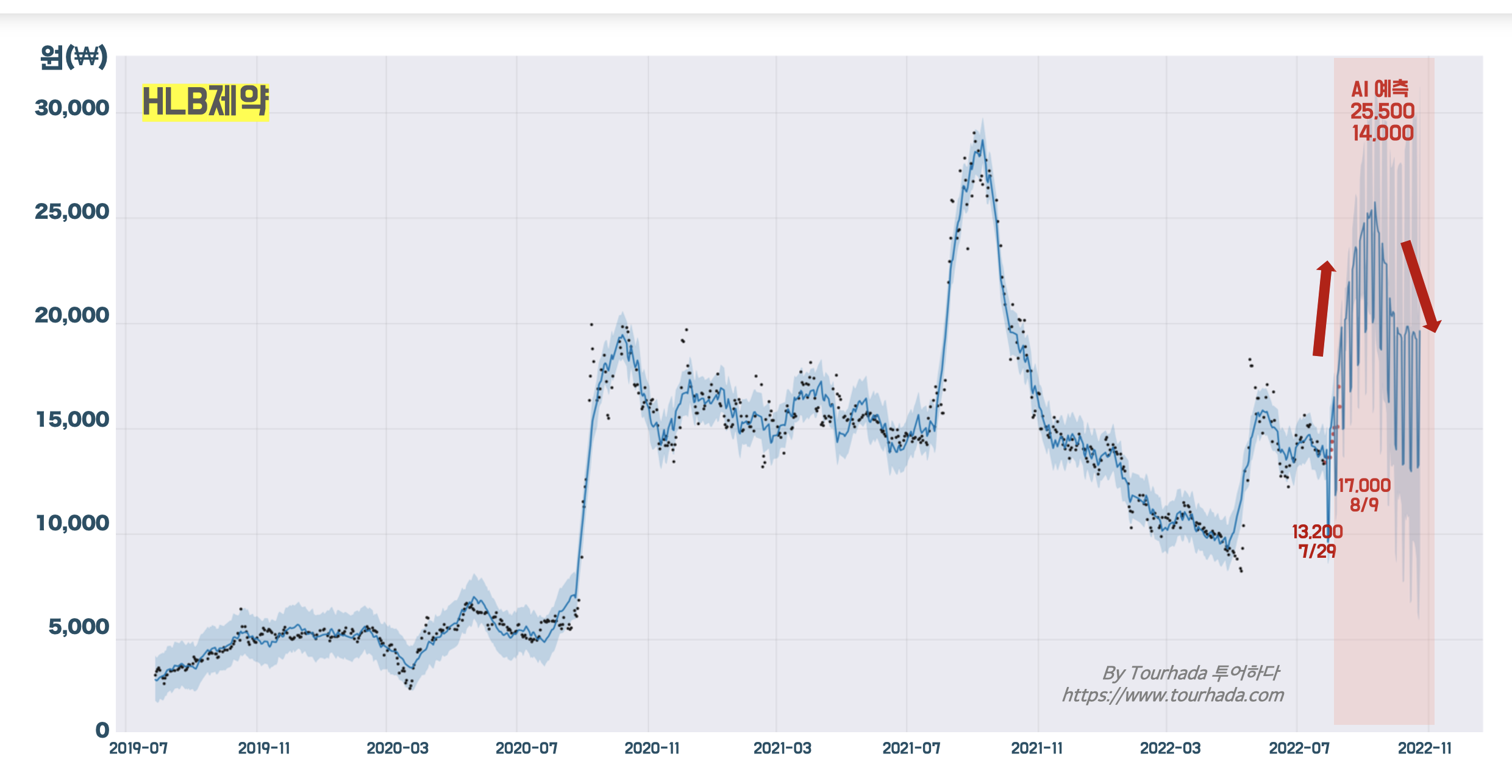HLB제약 미래 주가흐름 AI예측 가격 14,000~25,500원