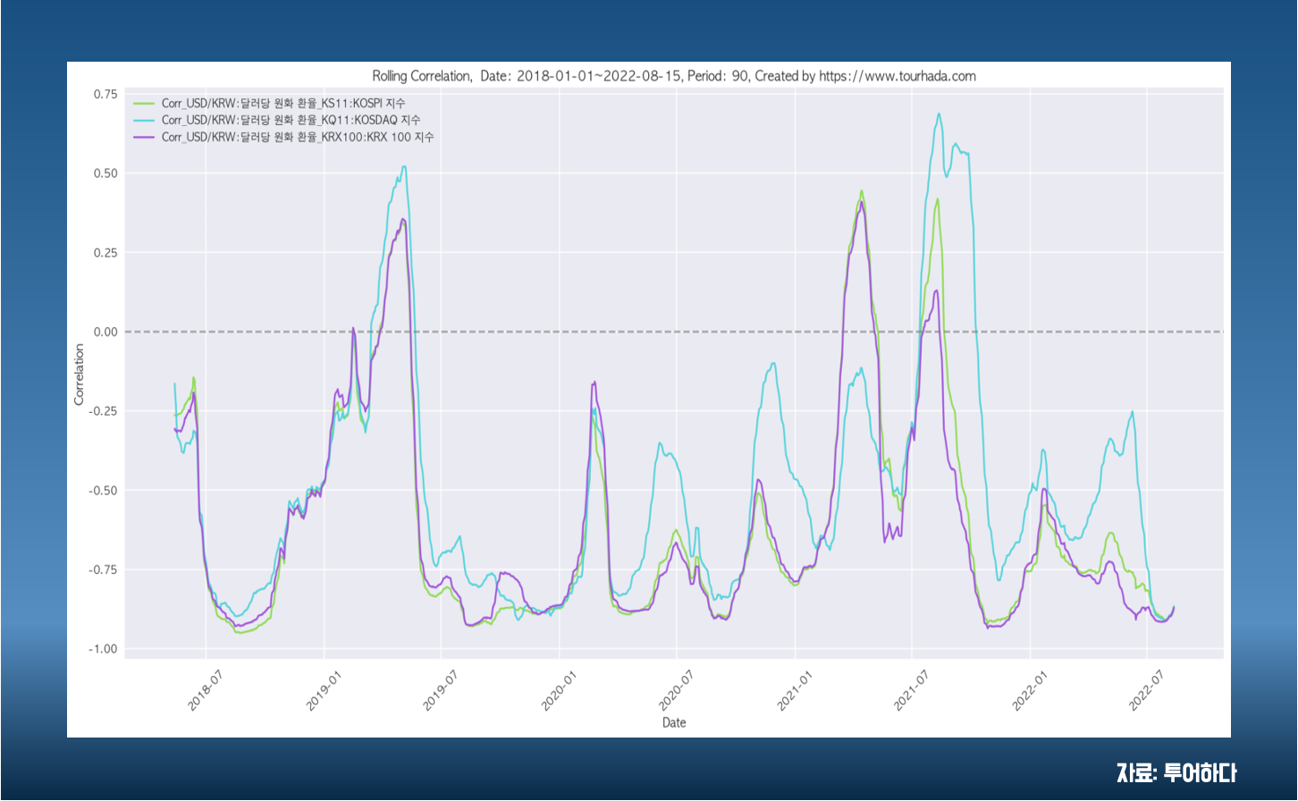 또한, 코스피와 코스닥 거래소 종목에 따라서도 상관관계 조금씩 다르게 나타나기도 합니다.