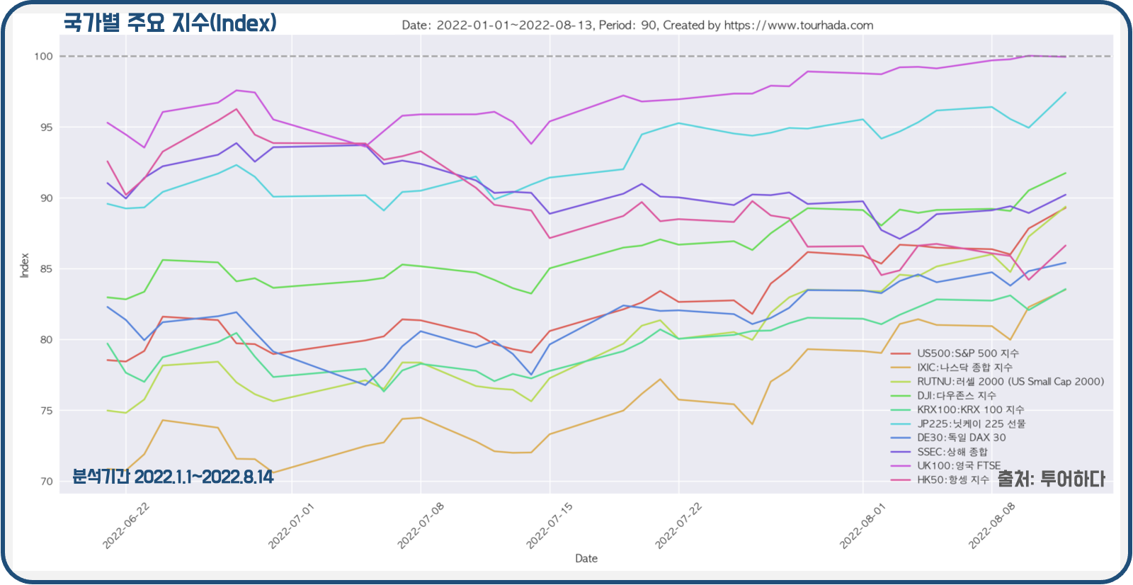 | ❏ 전세계 증시 및 국가별 주요지수 증가율 비교하기 (미국, 유럽, 영국, 독일, 중국, 한국) (0) | 2022.08.17 |