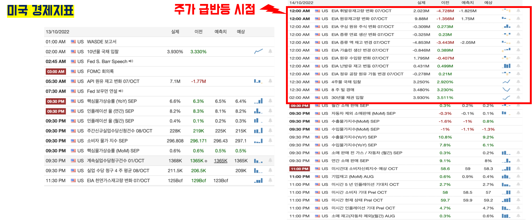 미국 경제지표 2022년 10월 13~14일 한국시간 기준 (자료: 트레이딩 이코노믹스)