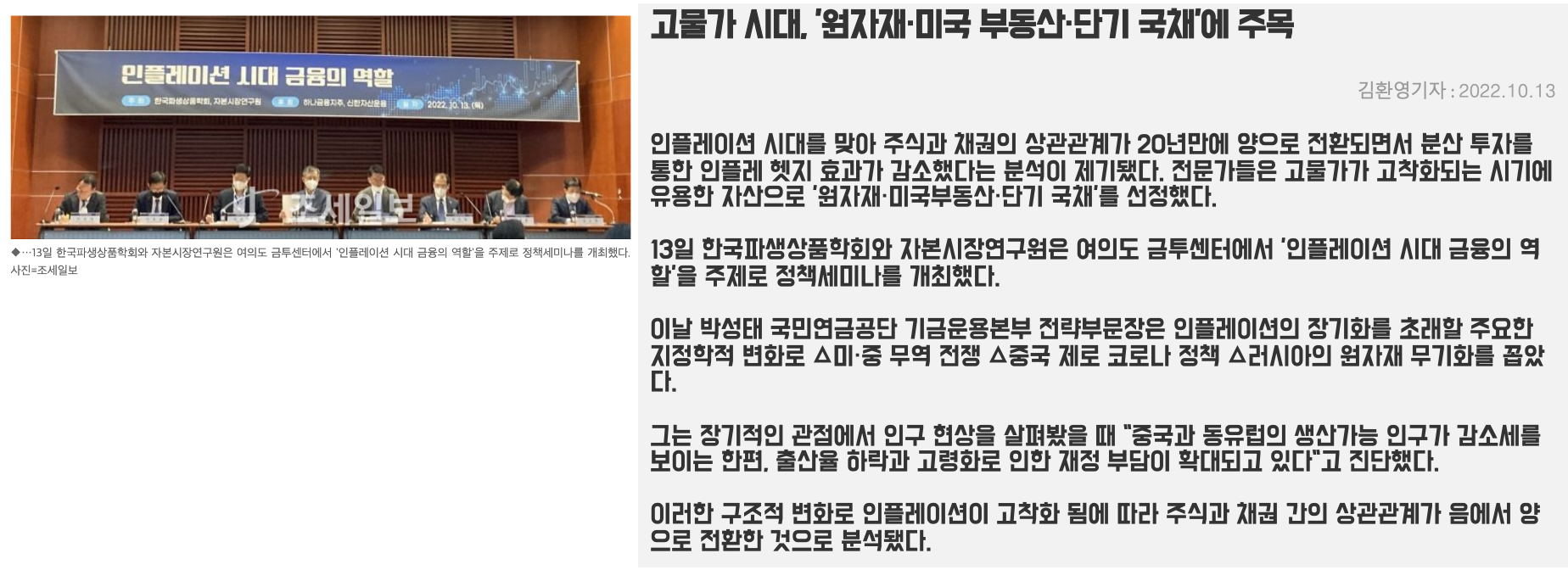 고물가 시대, '원자재·미국 부동산·단기 국채'에 주목 (자료: 조세일보)