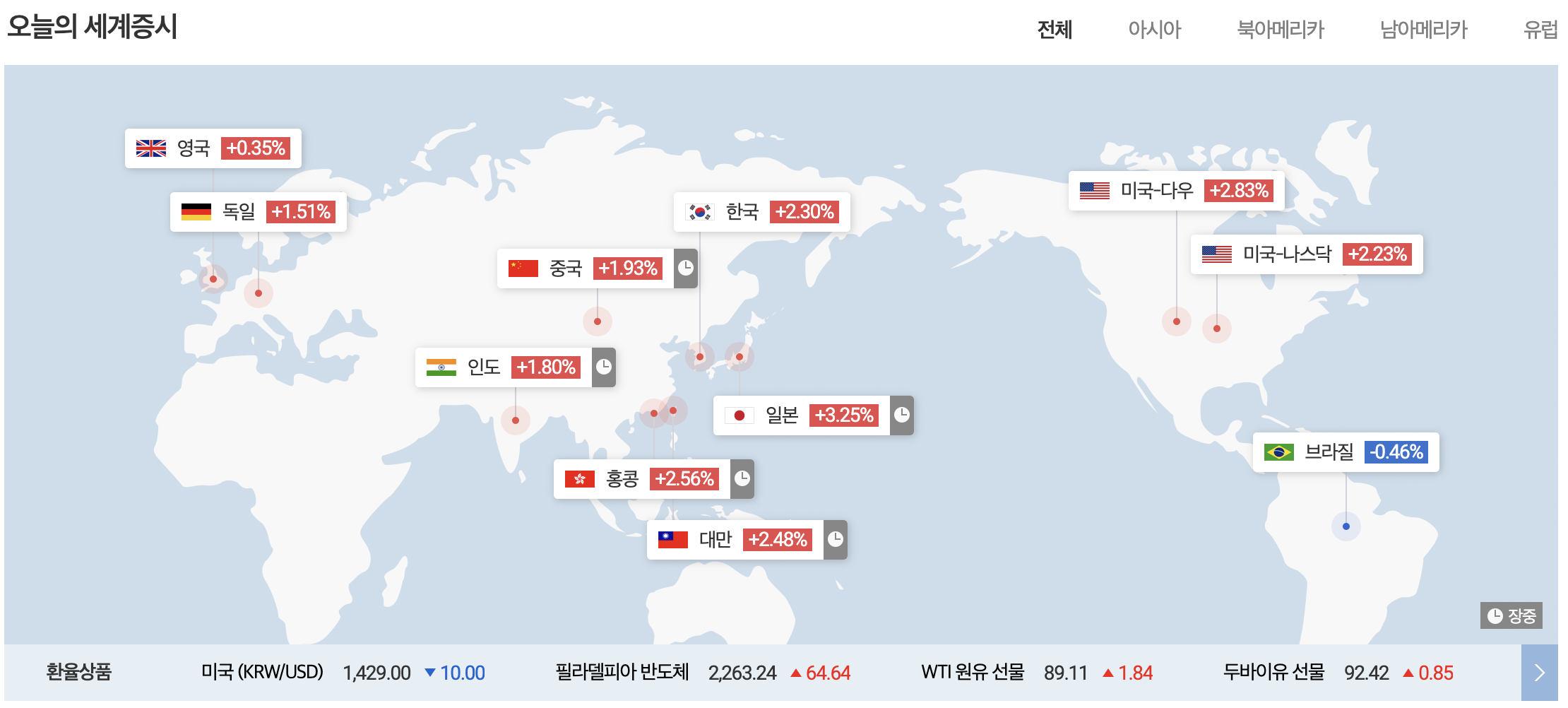 전세계 증시2022년 10월 14일 한국시간 기준 (자료: 다음금융)