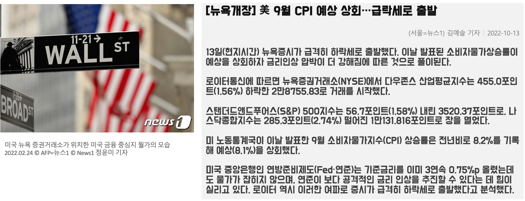 "인플레 정점 임박" 기대감에 증시 급반등...금융주↑[뉴욕마감] (자료: 머니투데이)