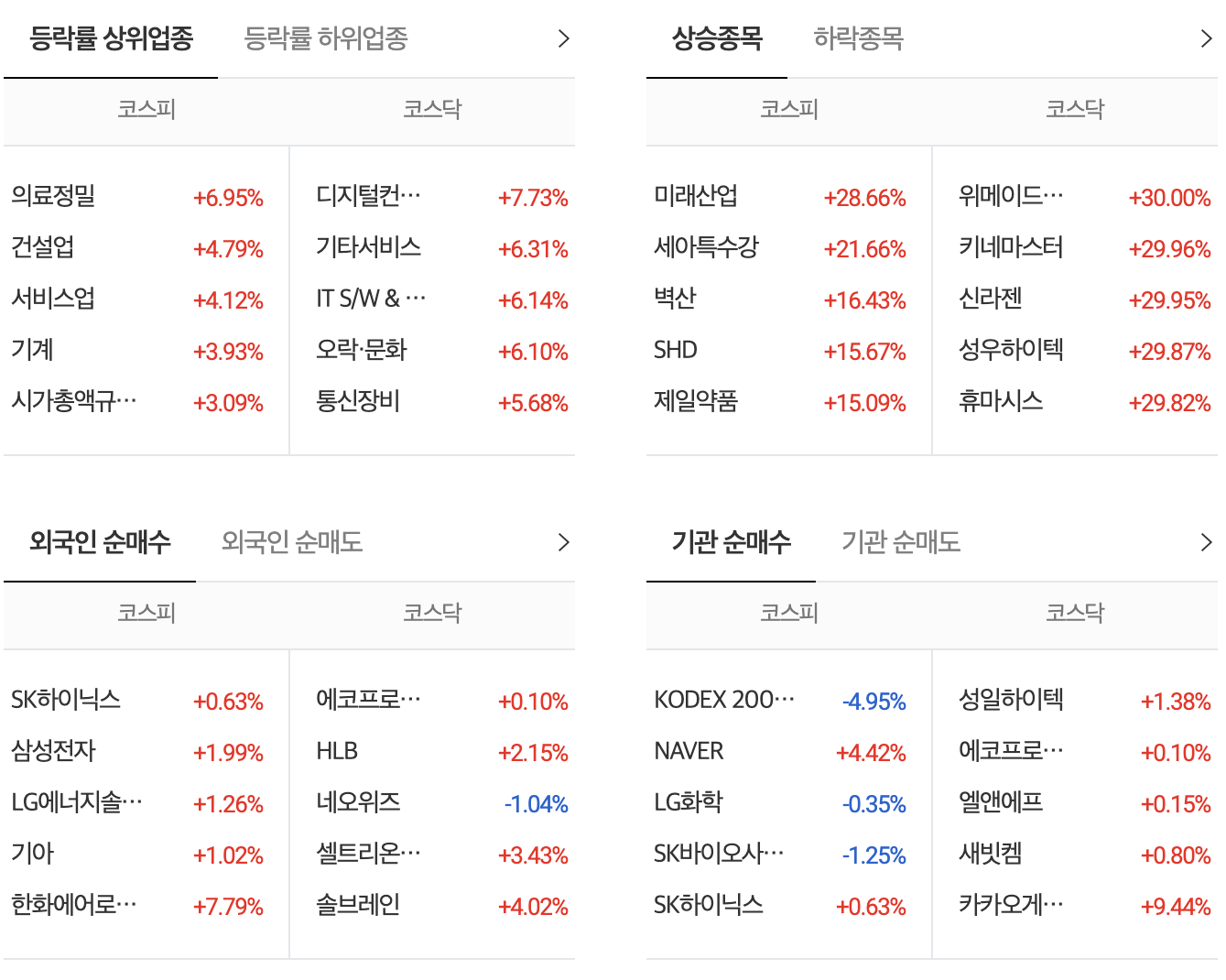 위에서 처럼 여러가지 경제 지표와 경제 시사 뉴스들에도 불구하고 미국주식과 국내 주식이 급등한 이유에 대해서는 전문가들조차 정확한 이유를 못 밝혀냈지만, 미국 시장에서는 뚜렷한 긍정적 시그널이 분명히 작용했기에 전체 큰시장이 급반등할 만한 이유가 있었을 것입니다.
