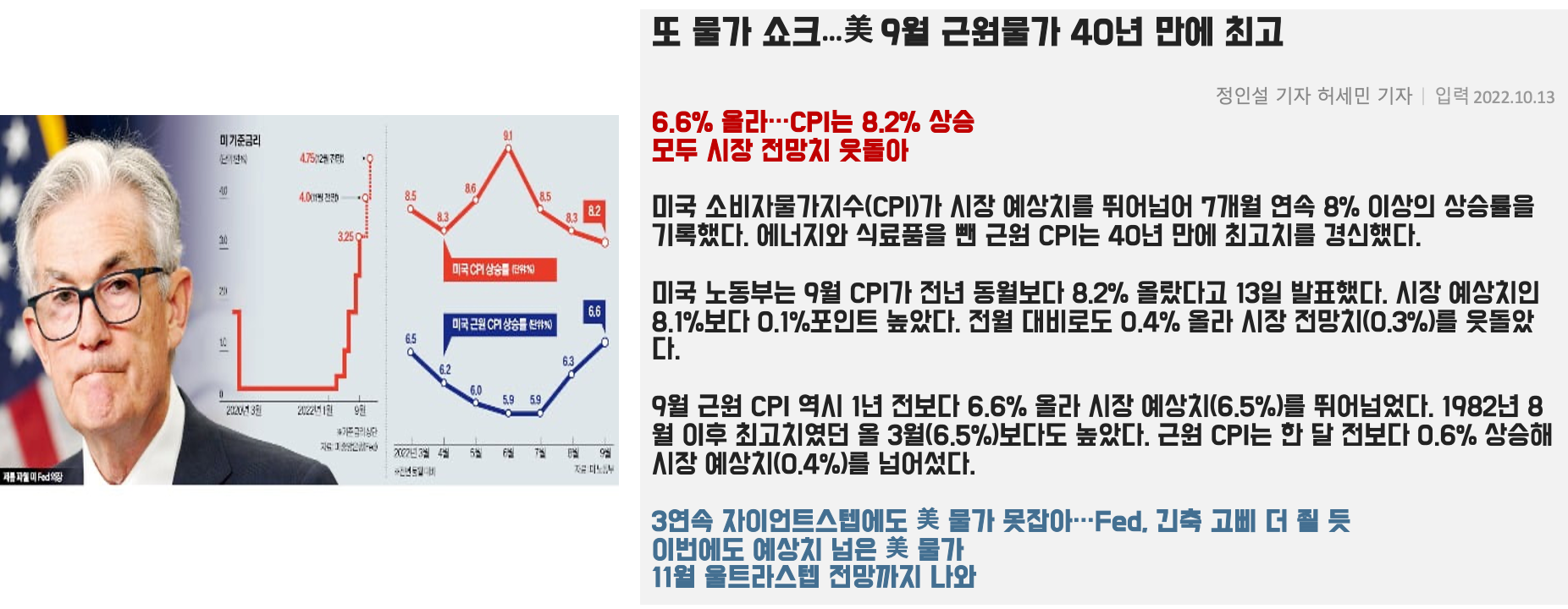 美 9월 CPI 8.2%·근원 CPI 6.6% 뛰어... 모두 예상치 웃돌아 (자료: 조선비즈)
