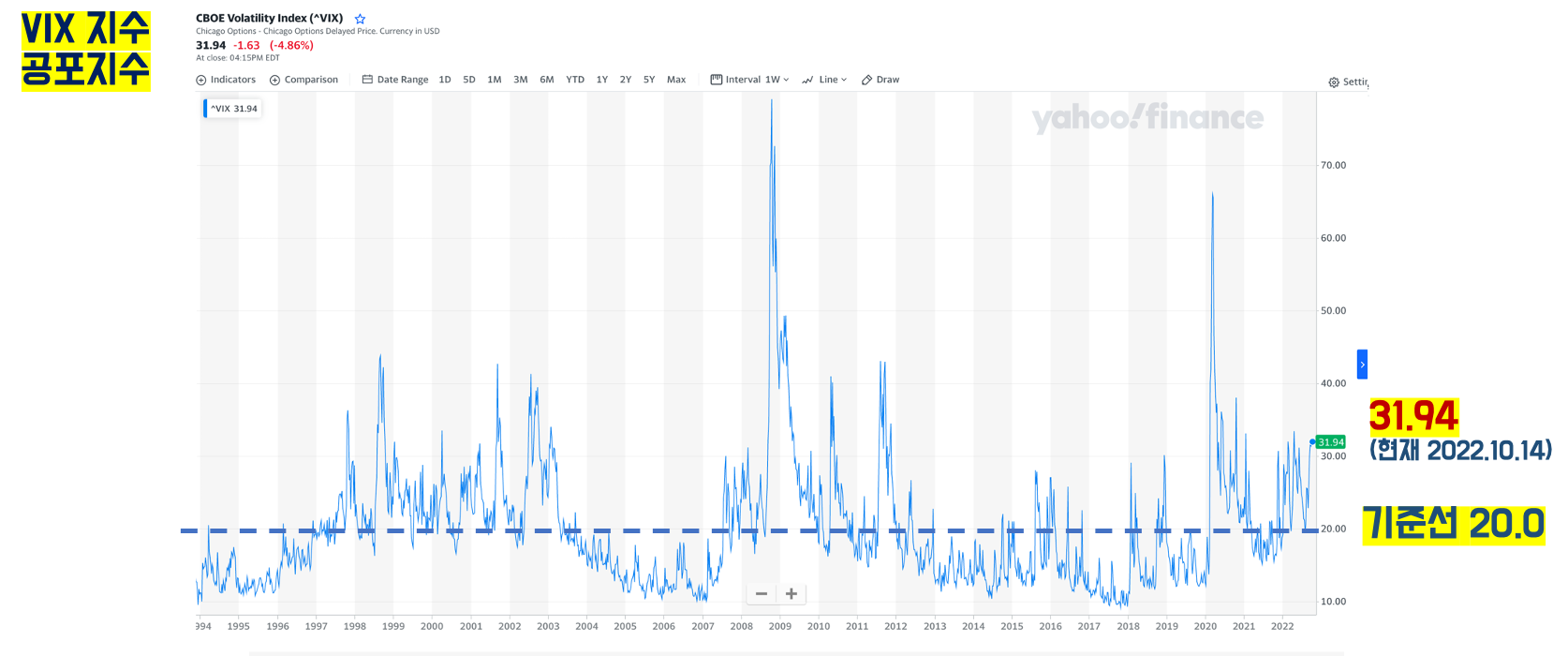미국 CPI 지수가 10월 13일 한국시간 저녁 9시 30분 예측치 8.1% 보다 8.2%로 소폭 상승 발표되었던 시점에는 미국 증시는 일제히 급하락을 이루면서 공포심리가 최대치에 달했습니다. VIX 공포지수가 33를 넘어섰다가 미국 증시는 새벽에 급반등을 이루면서 10월 14일은 31.94으로 소폭 하락했습니다. 지난달 미국 CPI 지수가 8.3% 에 비해 소폭 하락했고, 변화가 그닥 크지 않았지만 미국 주가에 미치는 영향은 급락과 상승을 반복하면서 투자자들에게 불안심리와 앞으로 주가 향방을 예측하는게 더욱 어려웠던것으로 보입니다.