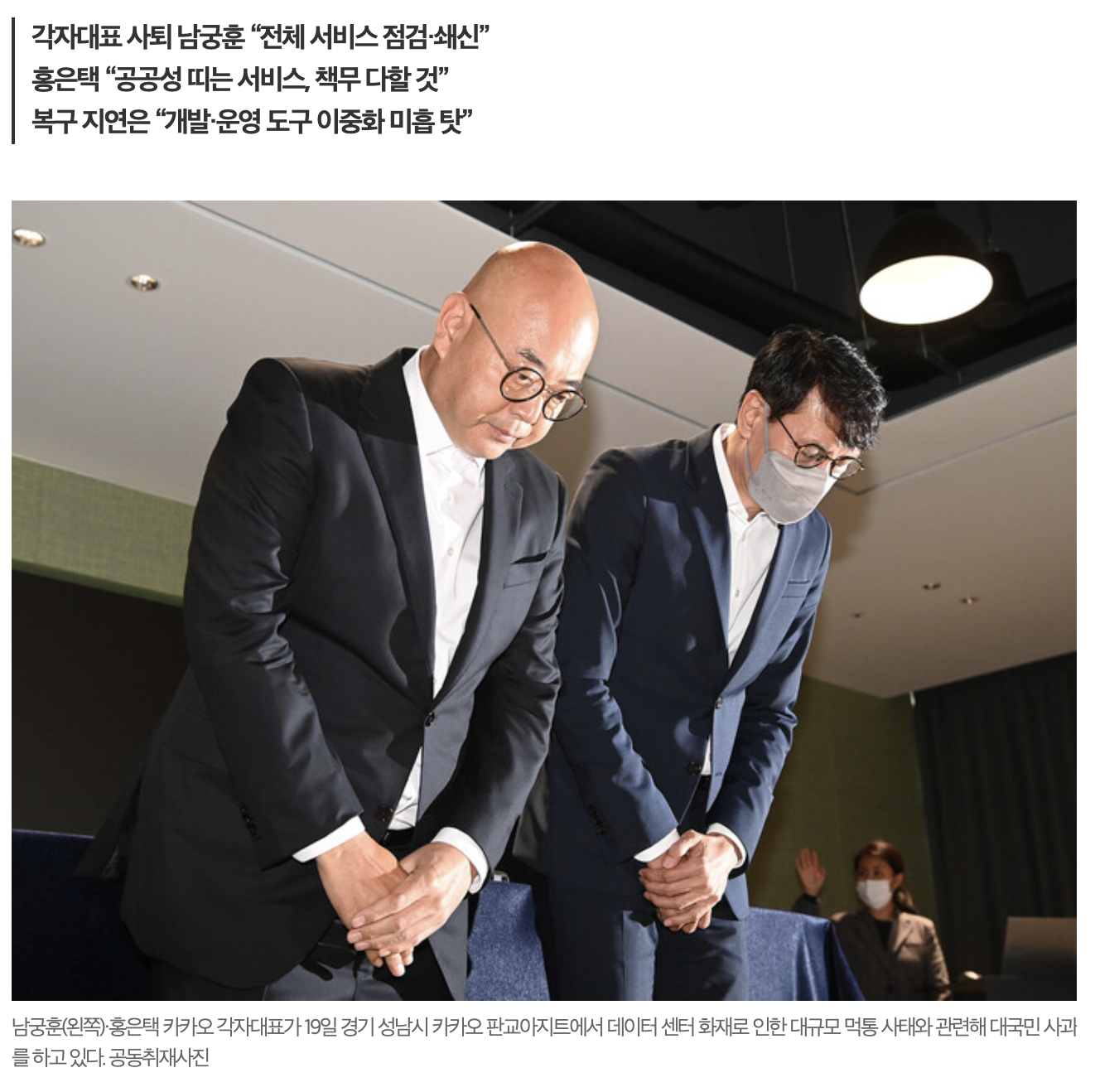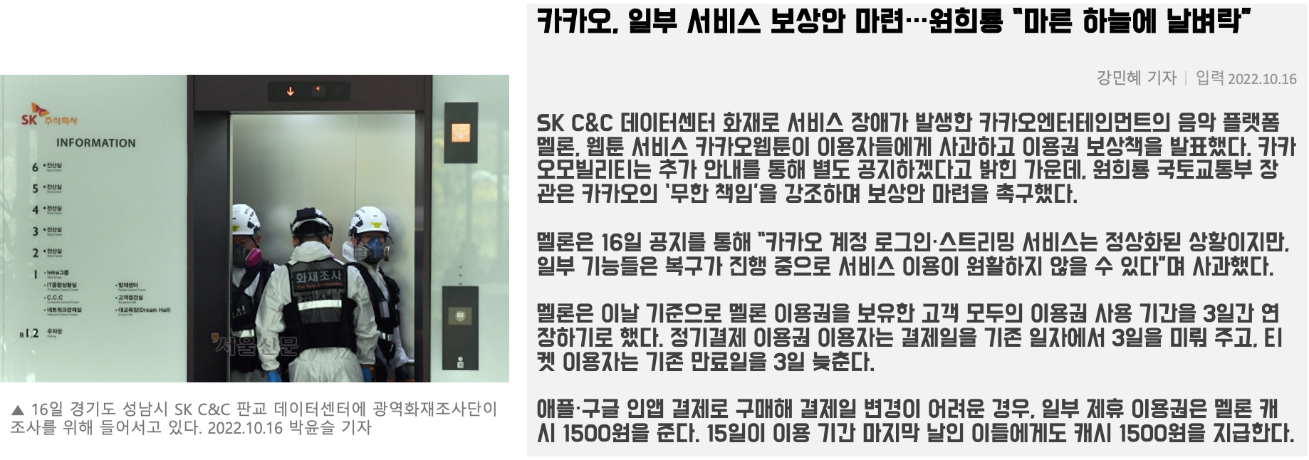 [한겨레] [영상] 카카오 “무료 이용자도 보상…SK C&C와 잘잘못 안 따질 것”