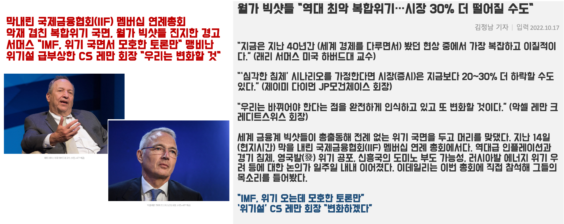 월가 빅샷들 "역대 최악 복합위기…시장 30% 더 떨어질 수도"