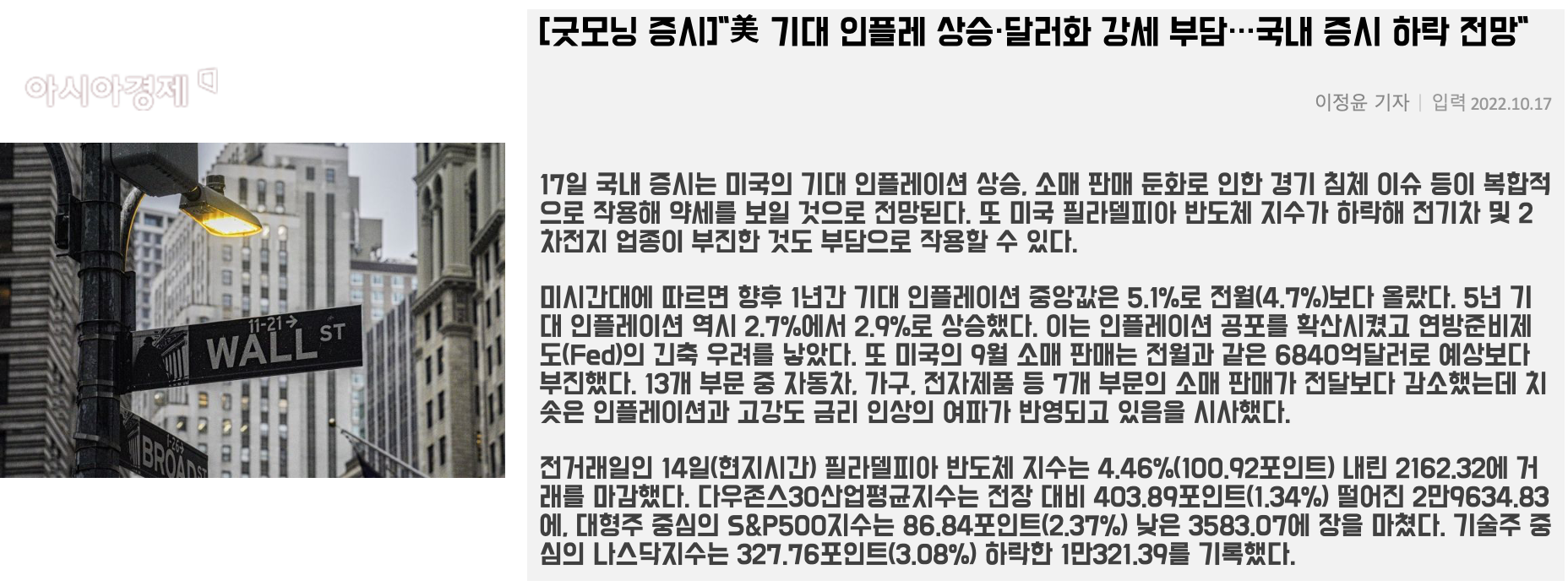 [ 굿모닝 증시 ]" 美 기대 인플레 상승 · 달러화 강세 부담 … 국내 증시 하락 전망