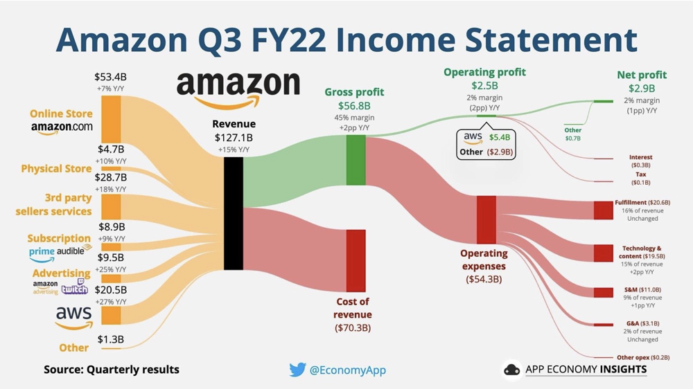 미국 빅테크 4대기업 MAGA(마이크로소프트, 애플, 구글(알파벳), 아마존) 에 대한 2022년 3분기 매출 상태표를 알아보기 쉽게 이미지로 도식화된 그림입니다.