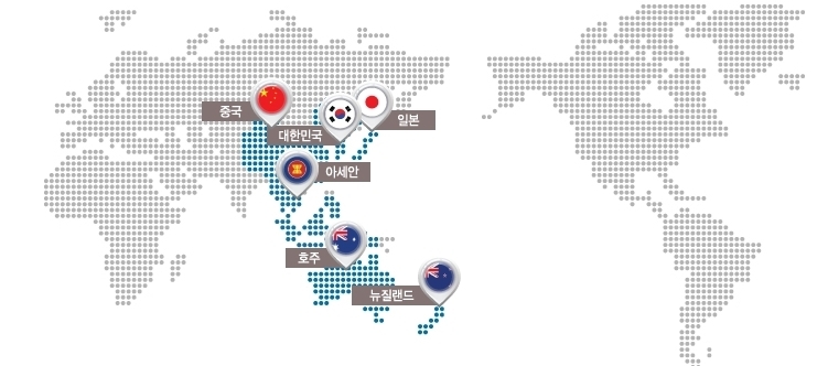 ▶ 2020년 11월 15일 RCEP 정상회의에서 ASEAN 10개국과 한국, 중국, 일본, 호주, 뉴질랜드가 RCEP 협정을 타결하고 정식 서명하였음.
