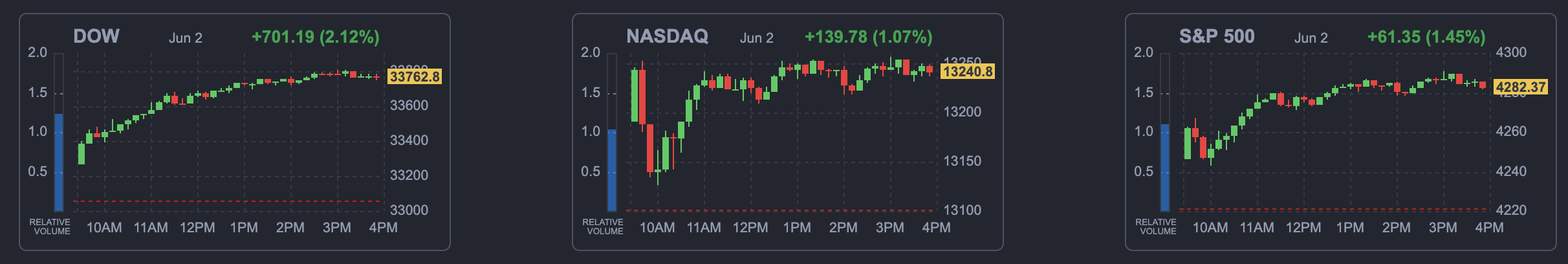 - 채무불이행 사실상 모면한 미국…안도랠리 나스닥 1.5%↑[뉴욕마감]