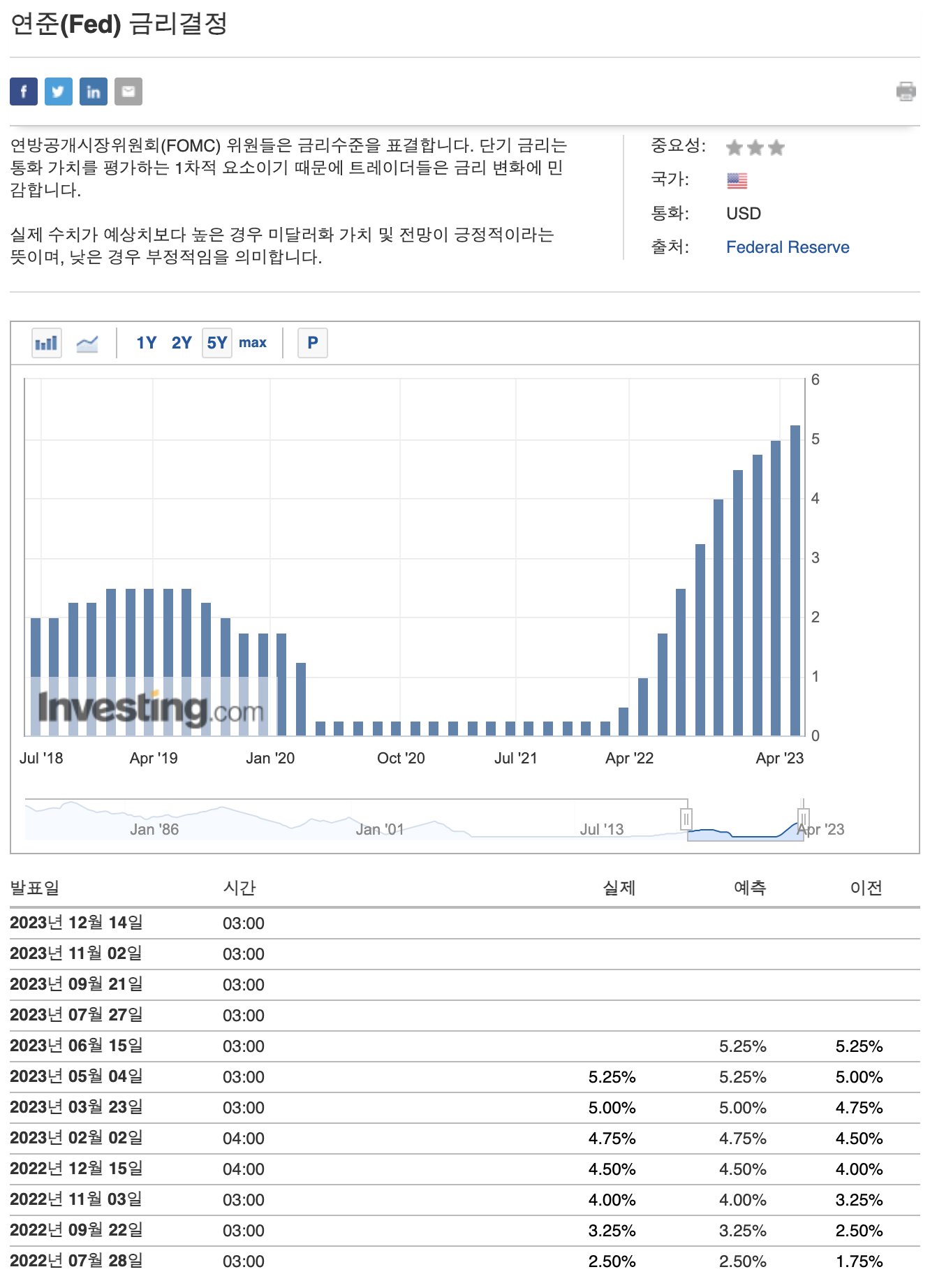 미국 기준금리 발표 (자료: 인베스팅닷컴)