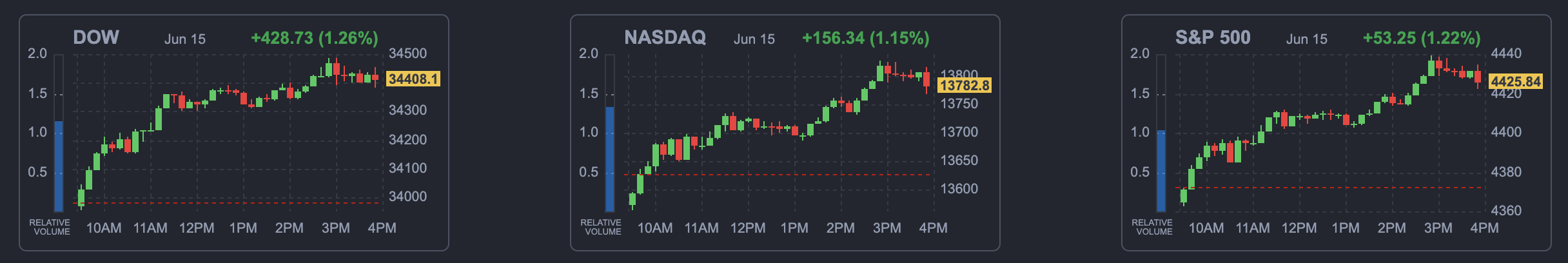 미국 증시 마감 현황 2023년 6월 16일 08:00 한국기준(자료: 핀비즈)