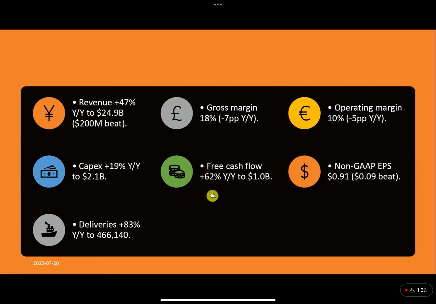 테슬라 2분기 실적발표는 2023년 7월 19일 발표 했습니다.