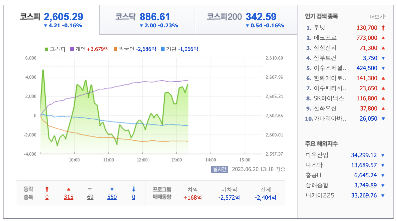 💠 [굿모닝 증시] 코스피, 업종별 차별화 장세…양호한 주가 흐름 [날짜: 2023-06-20]