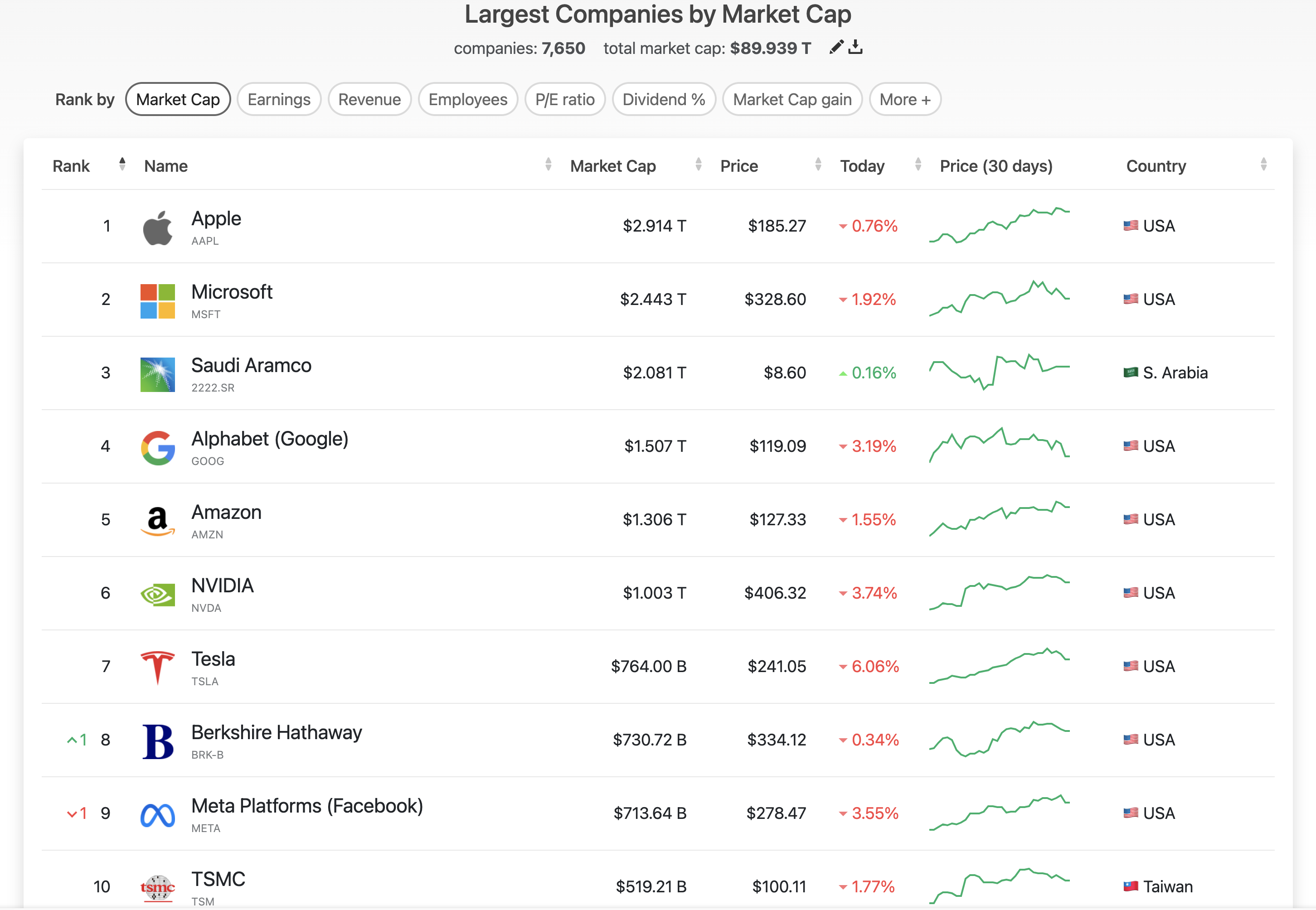 전세계 시가총액 순위 2023년 6월 27일 10:00 (자료: 컴퍼니즈마켓캡)