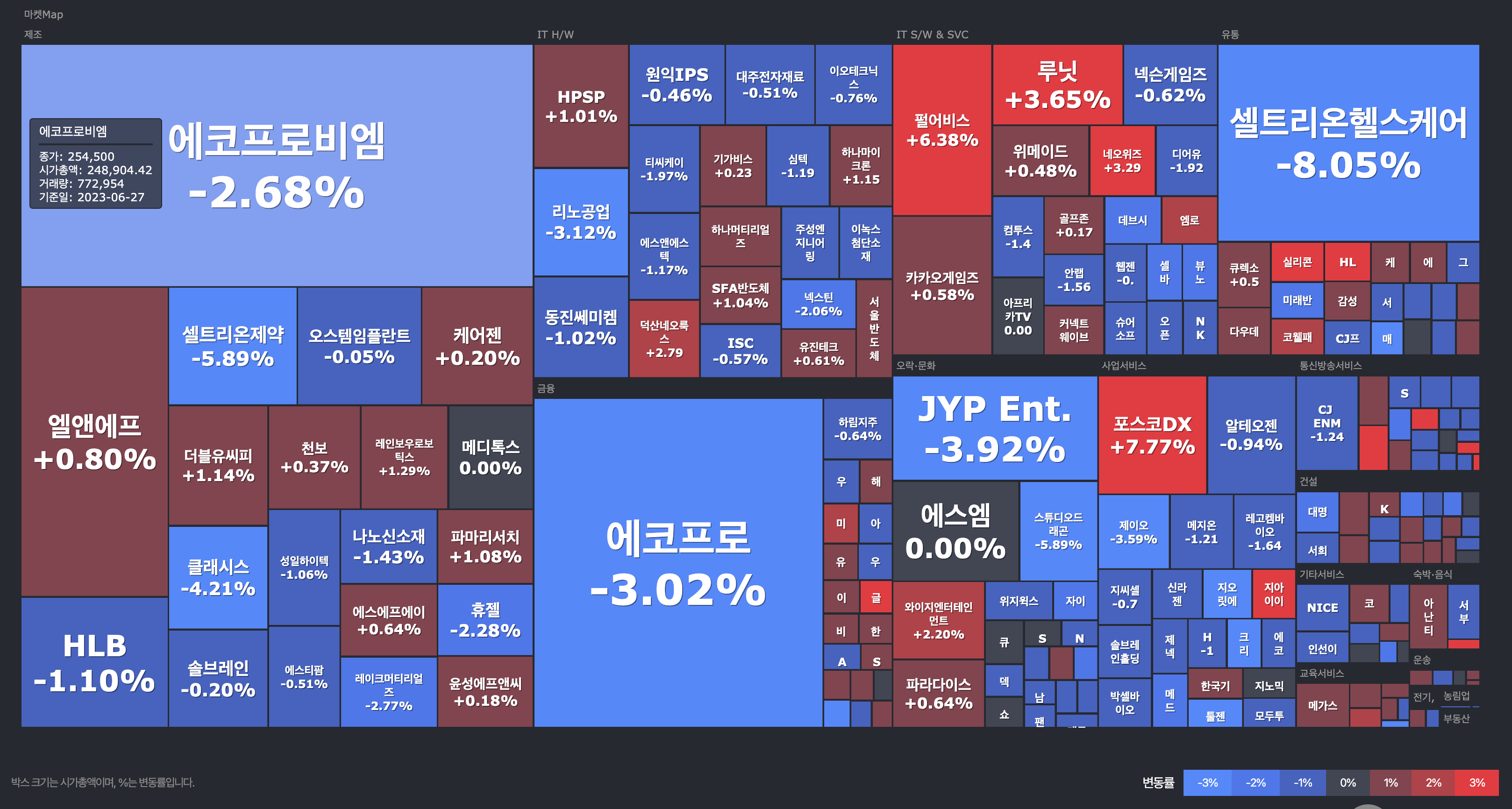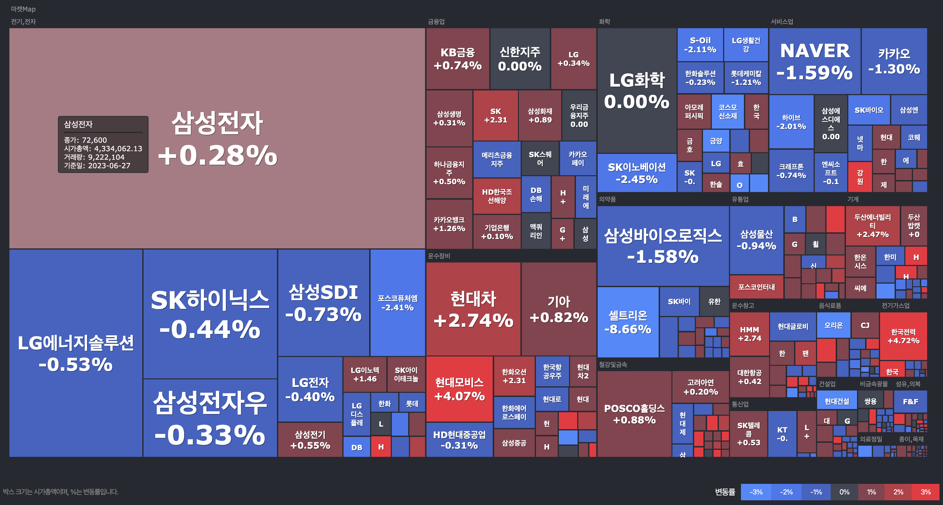 국내 증시 마감현황 2023년 6월 27일 (자료: 한경 코리아마켓)