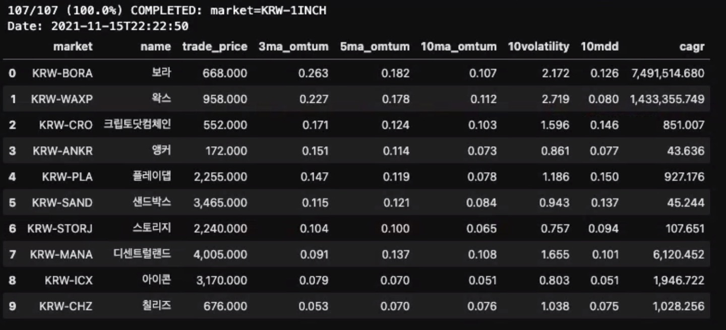 2021년 11월16일에 분석해서 선정된 코인은 총 9개 였다.