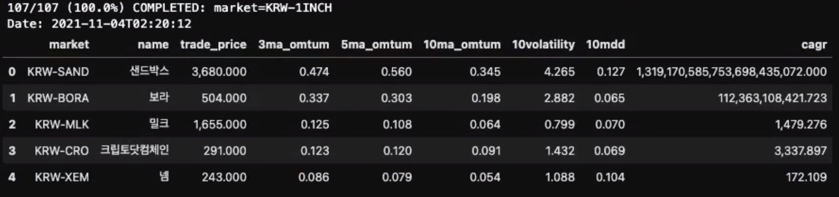 2021년 11월 4일 분석해서 선정된 코인은 총 5개 였다.