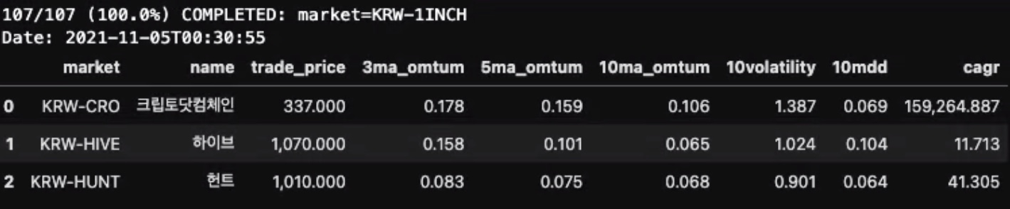 2021년 11월 5일 분석해서 선정된 코인은 총 3개 였다.