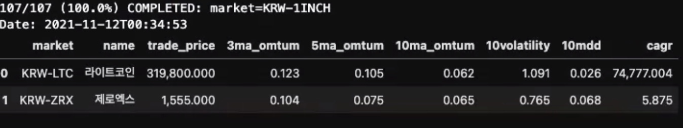 2021년 11월 12일에 분석해서 선정된 코인은 총 2개였다.