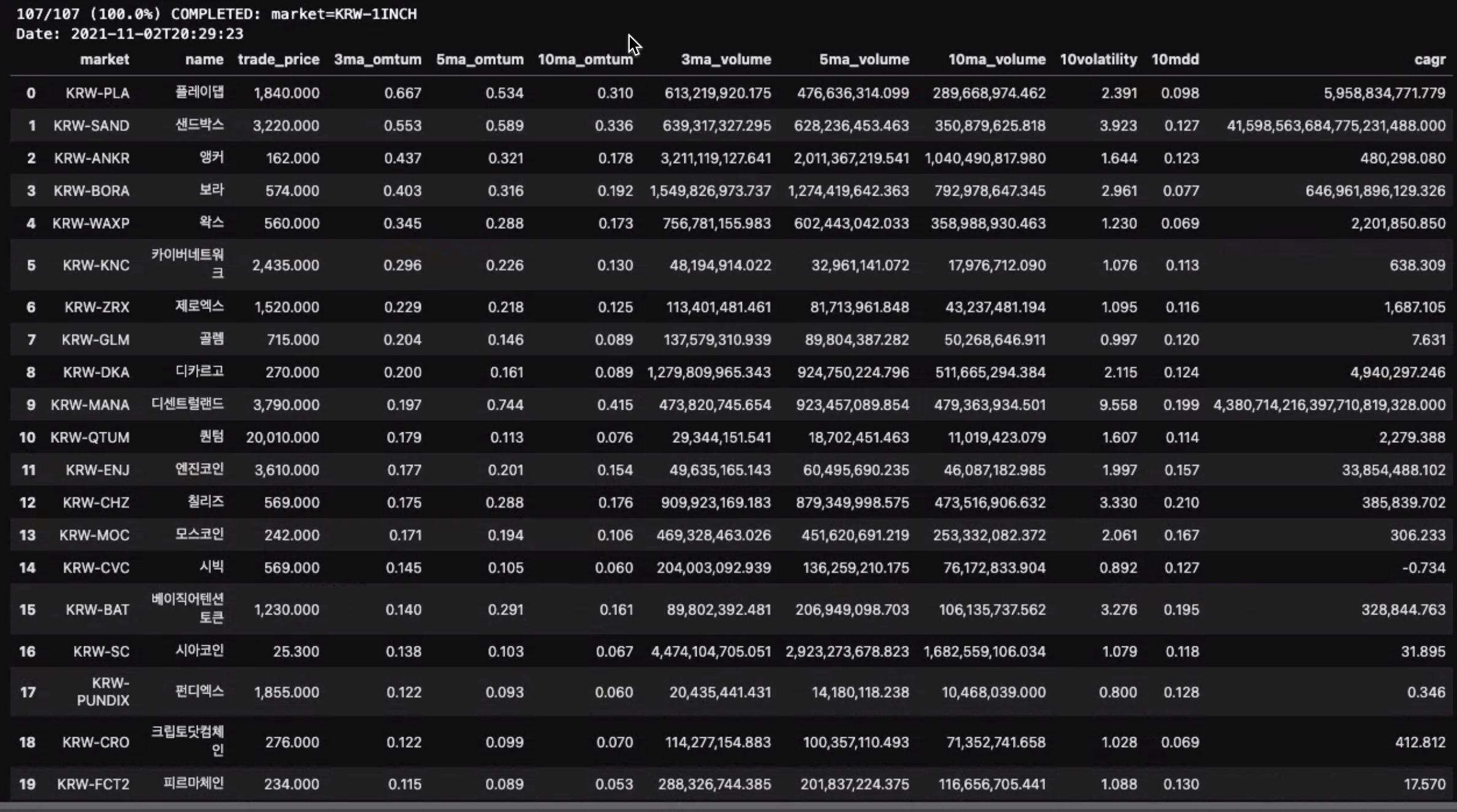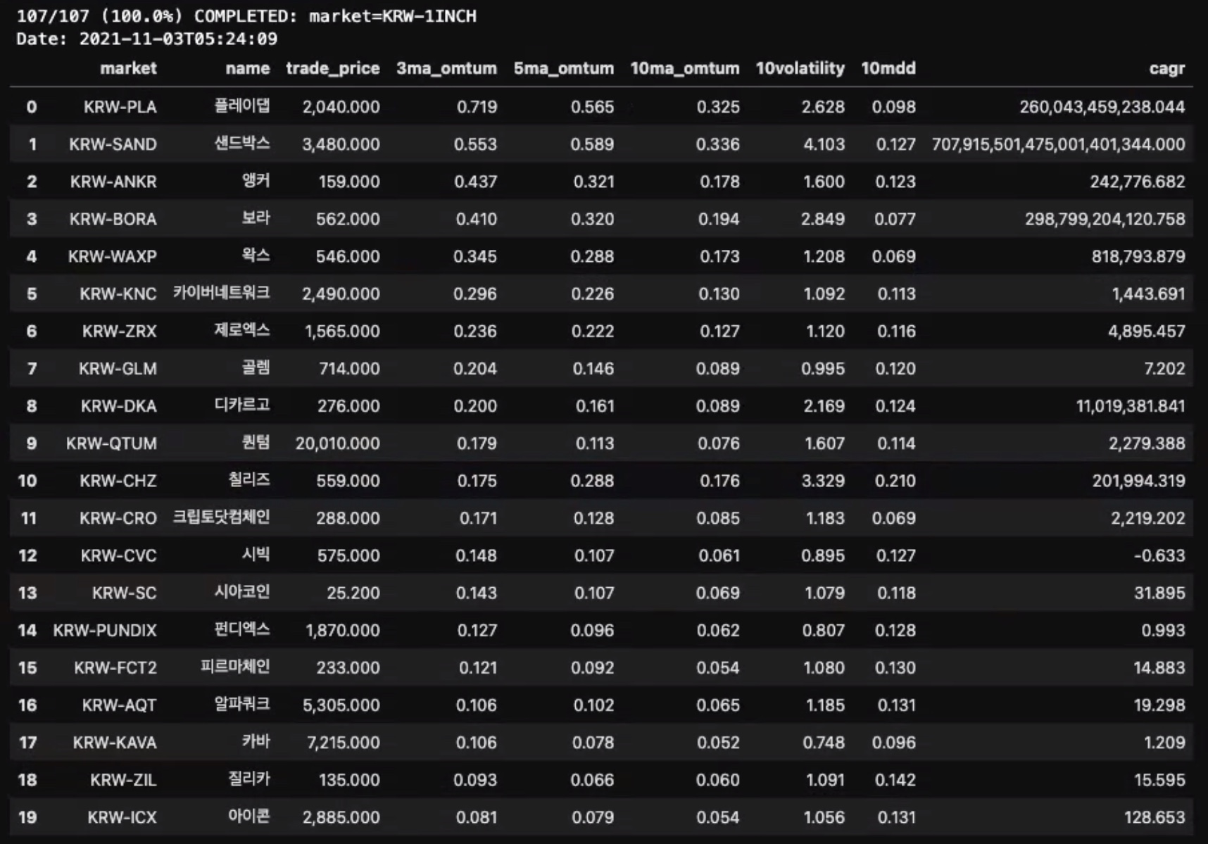 2021년 11월 3일 분석해서 선정된 코인은 총 20개 였다.
