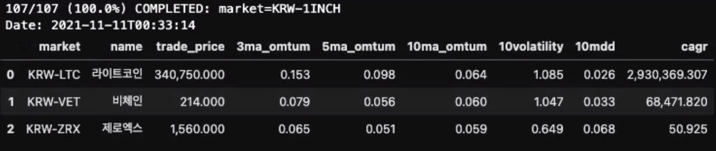 2021년 11월 11일에 분석해서 선정된 코인은 총 3개 였다.