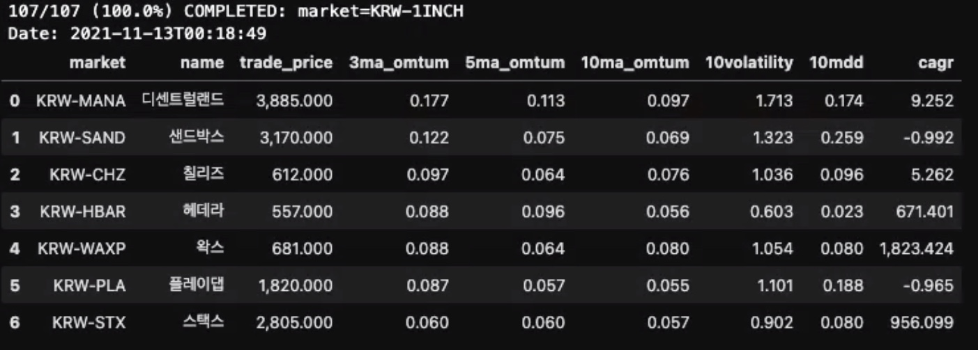 2021년 11월 15일에 분석해서 선정된 코인은 총 7개 였다.