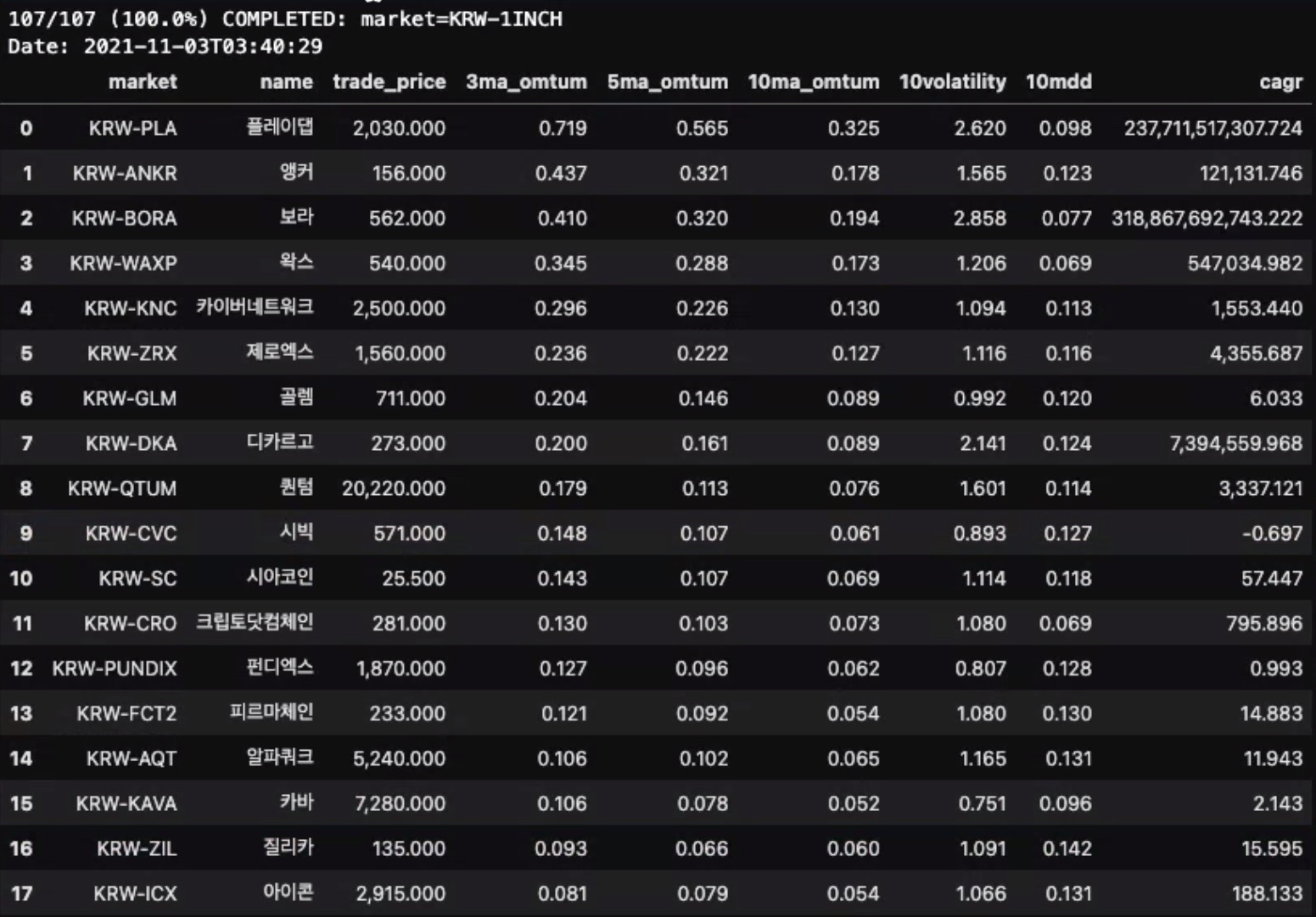 2021년 11월 3일 다시 분석해서 선정된 코인은 총 18개 였다.