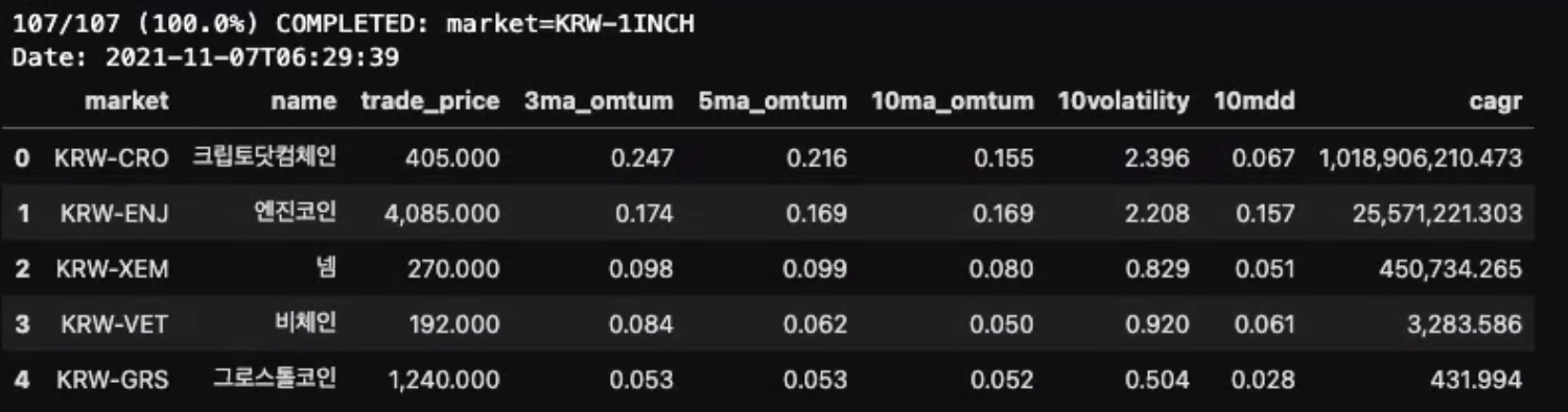 2021년 11월 7일 분석해서 선정된 코인은 총 5개 였다.