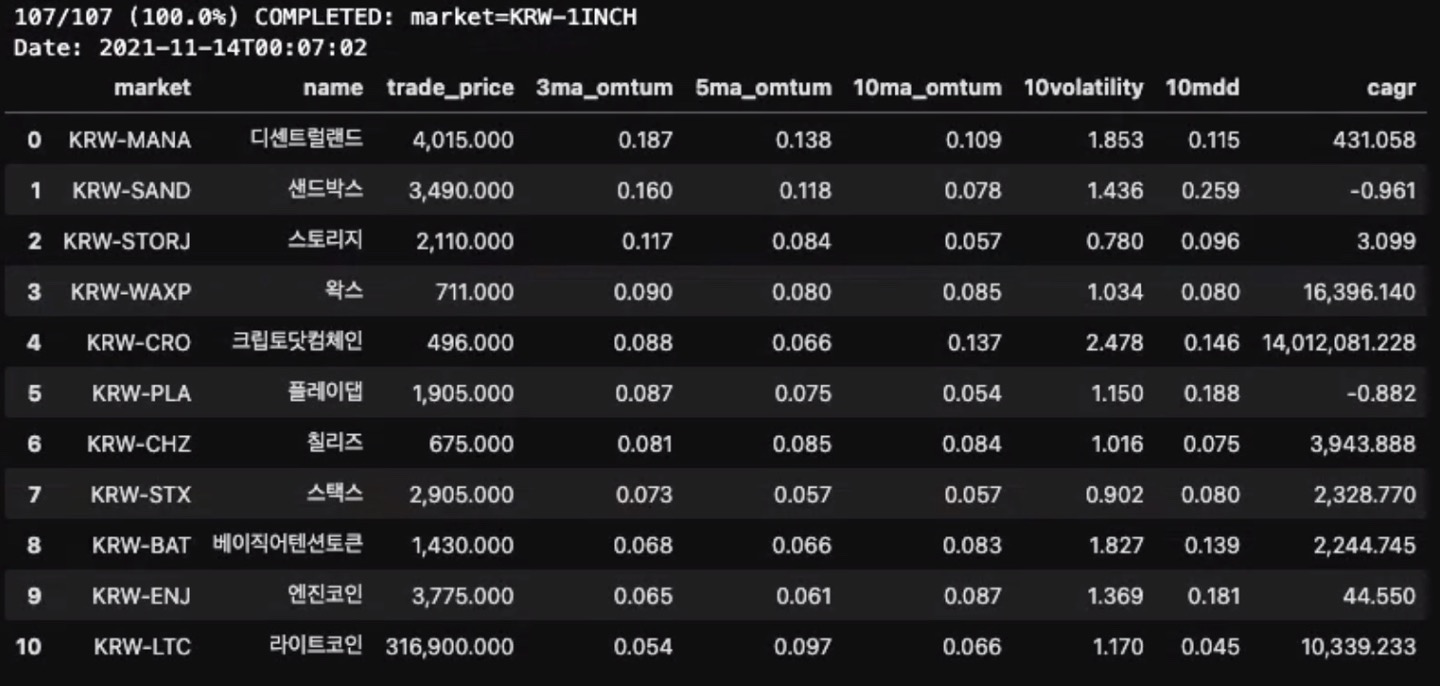 2021년 11월 14일에 분석해서 선정된 코인은 총 11개 였다.