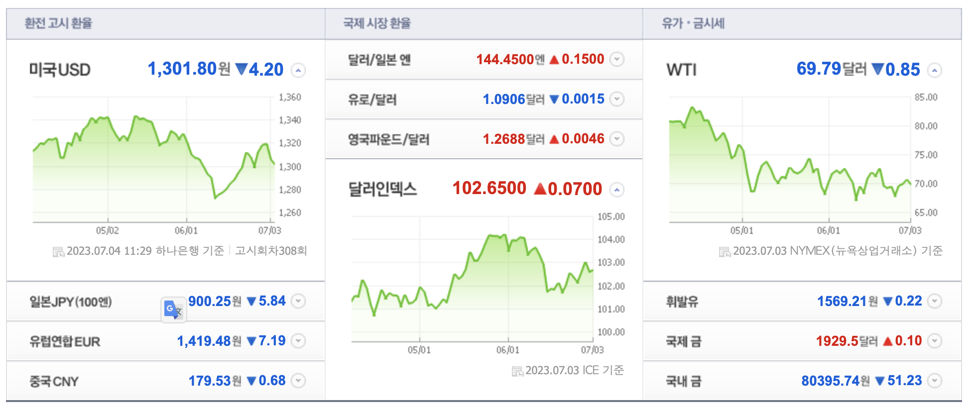 💠 미국과 한국 주식시장의 상반된 모습 [날짜: 2023-07-04]