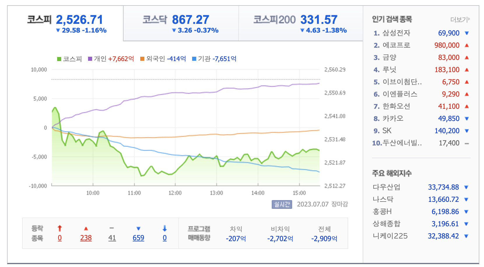💠 미국 추가 긴축 우려로 주식시장 하락 전망 [날짜: 2023-07-09]