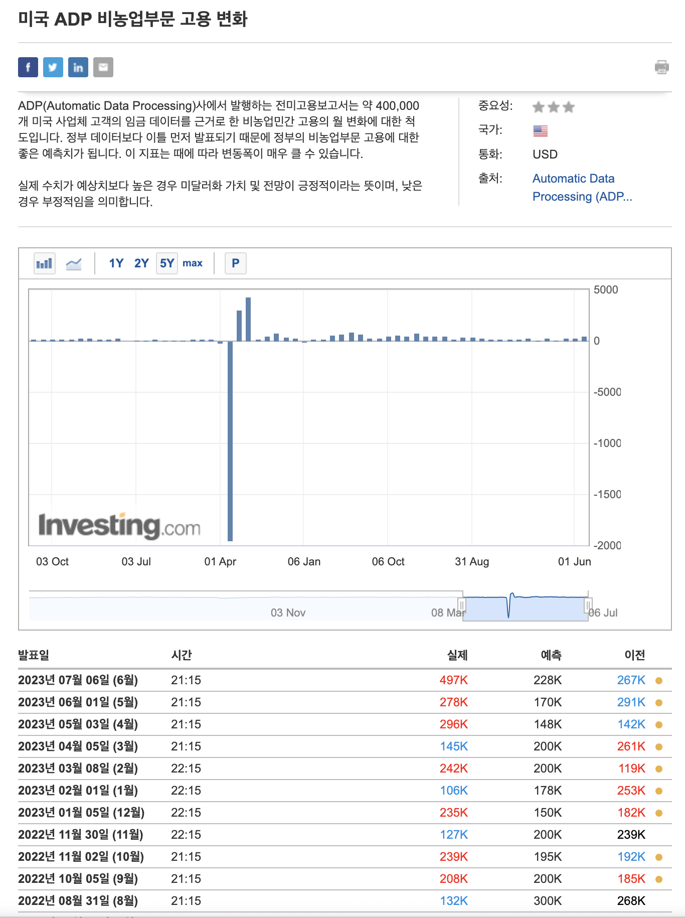 미국 노동부와 ADP 비농업고용지수 자료입니다.