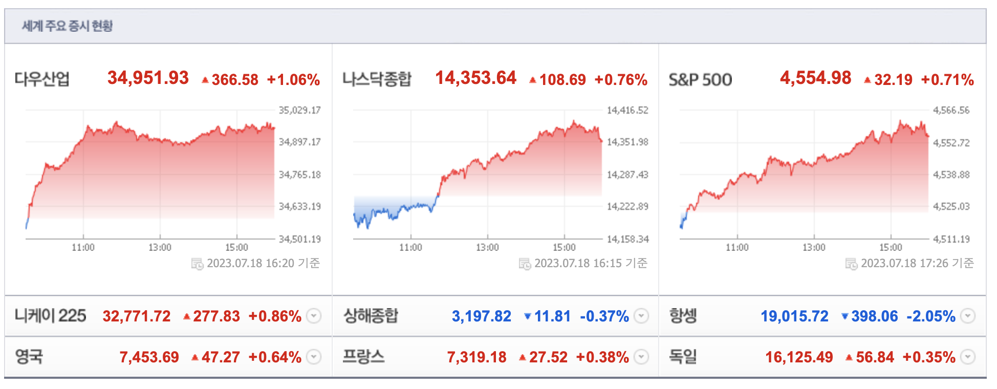 - 제목:[데이터로 보는 증시]해외 주요 증시 동향(7월 18일)