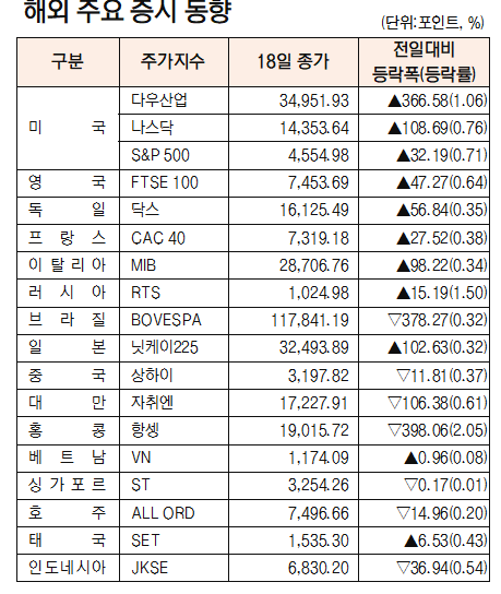 - [데이터로 보는 증시]해외 주요 증시 동향(7월 18일)