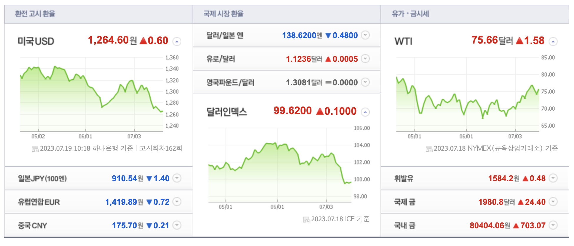 환율이 하루 만에 반등하여 1260원 초반대로 상승했다. 이는 달러인덱스가 100에 가까워지며 달러 강세가 나타나고 있음을 보여준다. 그러나 달러 매도 물량이 출회되고 있어 상승폭은 줄어들고 있다. 이날 환율은 전 거래일 종가보다 2.20원 오른 1262.6원에 거래 중이며, 전날 하락한 후 하루 만에 상승 전환된 것이다. 이를 고려하면 이날 환율은 전 거래일 종가 대비 5.35원 상승할 것으로 예상된다. 달러인덱스가 상승세를 나타내고 있는 가운데, 유럽중앙은행(ECB)이 7월 이후 금리 동결을 시사하자 유로화가 약세를 보이면서 달러화의 반등을 이끌었다. 이에 따라 달러·위안 환율은 7.19위안대, 달러·엔 환율은 139엔대에 거래되고 있다. 외국인 투자자들은 코스피 시장에서 370억원대, 코스닥 시장에서는 780억원대 순매도하고 있다. 이러한 분위기에서는 뉴욕증시의 훈풍이 국내 증시로 이어지지 않을 것으로 예상된다.