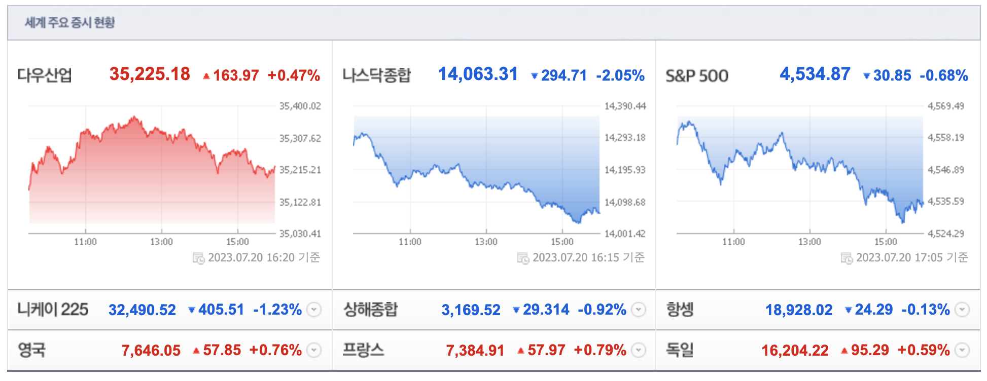 - [데이터로 보는 증시]해외 주요 증시 동향(7월 20일)