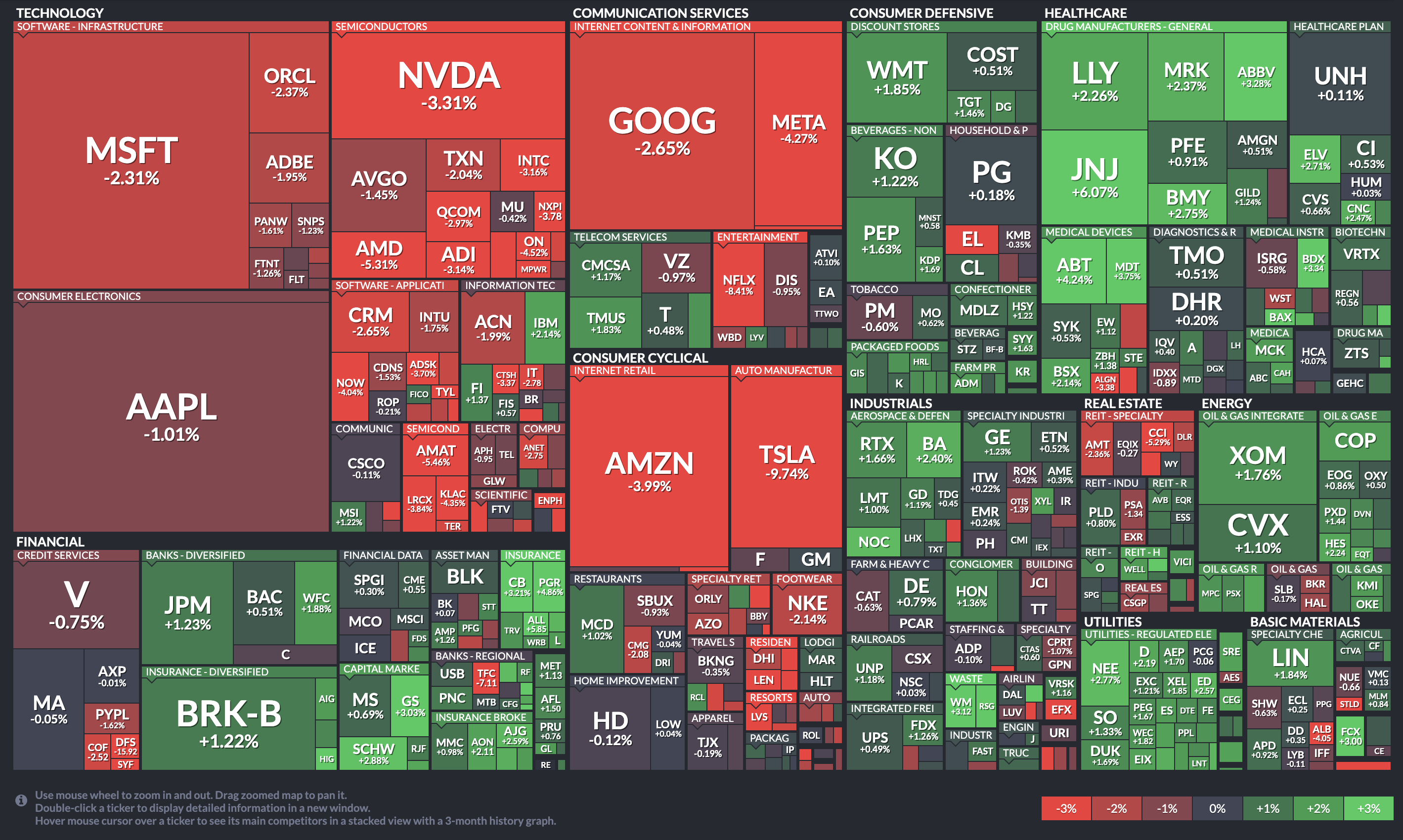 💠 테슬라와 넷플릭스 주가 하락으로 인한 주식시장의 혼조 [날짜: 20230721]