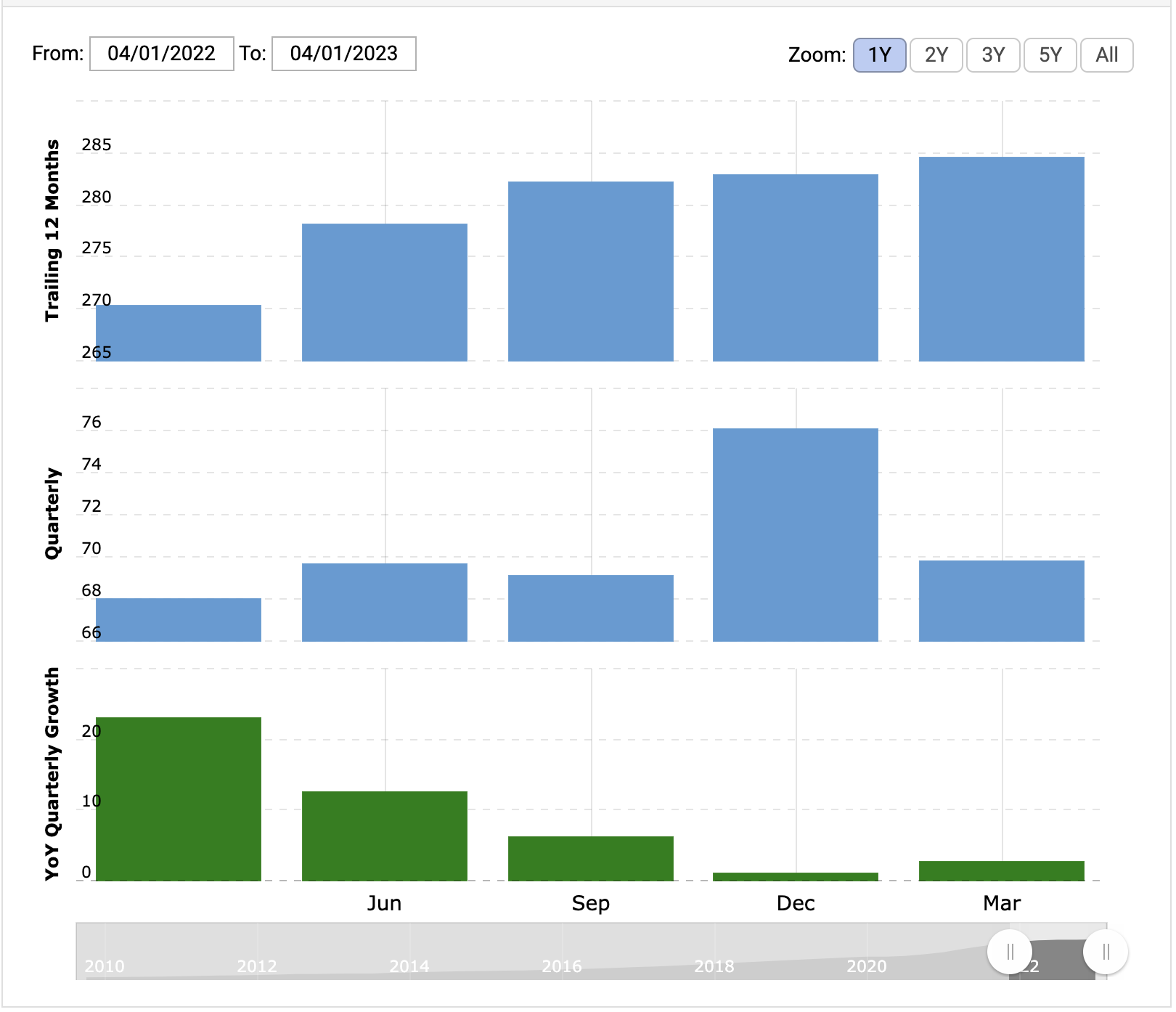 - Alphabet revenue for the twelve months ending March 31, 2023 was $284.612B, a 5.28% increase year-over-year.