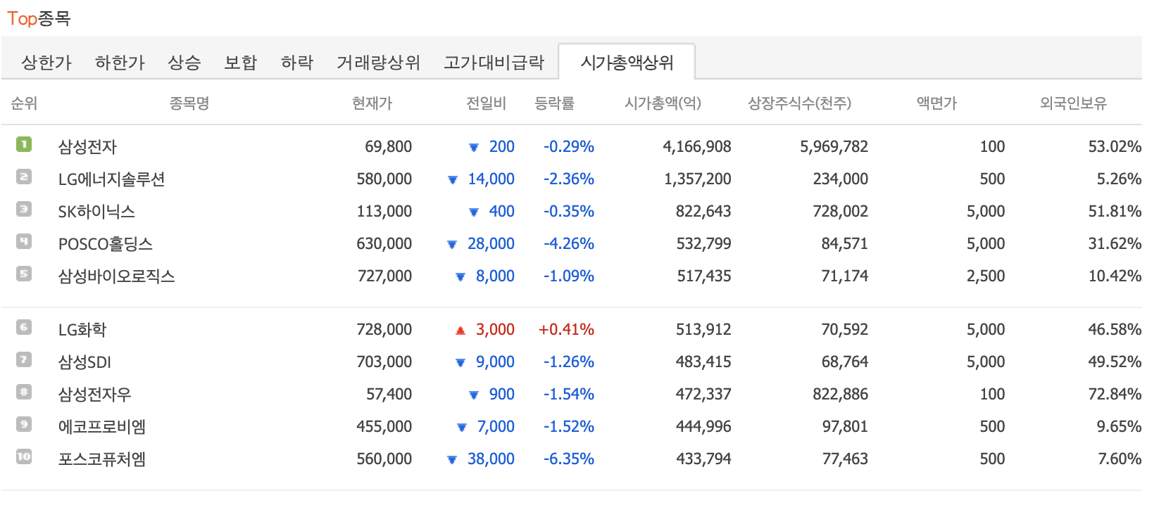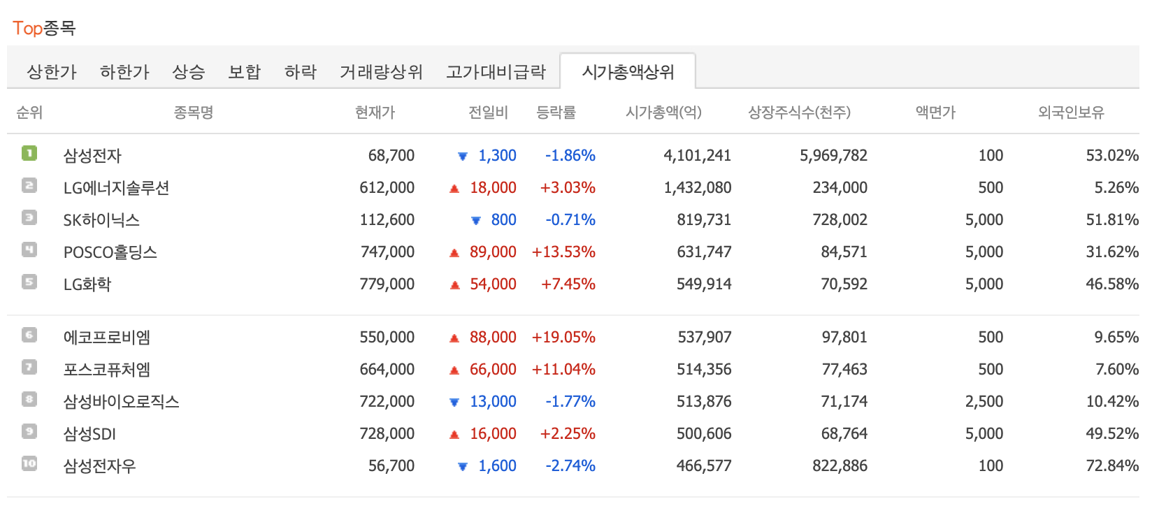 두 그룹이 급등락을 반복하면서 시가총액 순위가 5~11위 사이를 오르락내리락 했습니다.