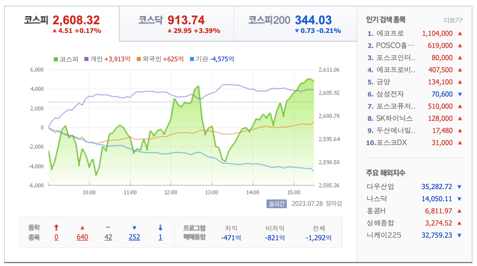 - 외국인 투자자들은 코스피와 코스닥 시장에서 순매도를 진행, 이는 주식시장의 하락을 예상할 수 있는 신호