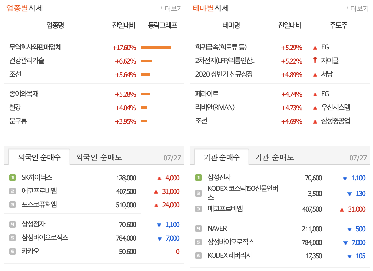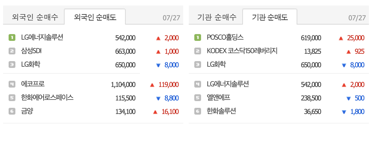 - 외국인 투자자들은 코스피와 코스닥 시장에서 순매도를 진행, 이는 주식시장의 하락을 예상할 수 있는 신호