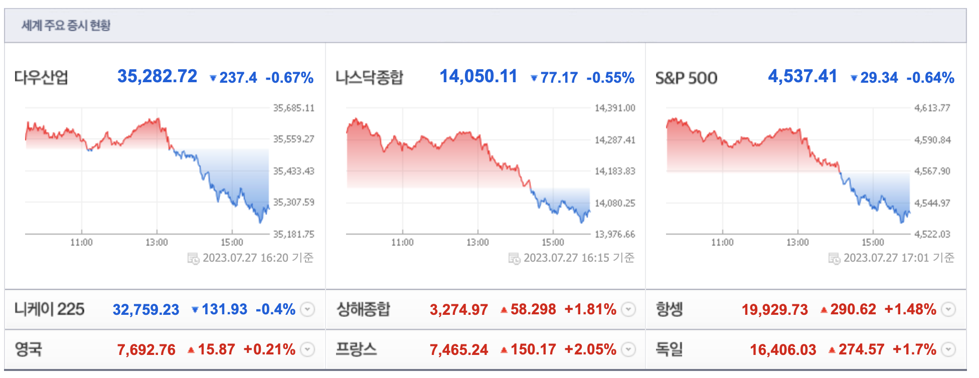 💠 인텔, 메타 등의 실적 호조로 주식시장 상승 ... 일본은행 장기국채금리 0.5% 인상으로 주가 하락 [날짜: 20230728]