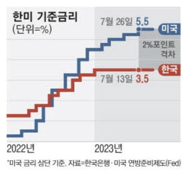 #미국 경제성장률과 한미 기준금리 차이