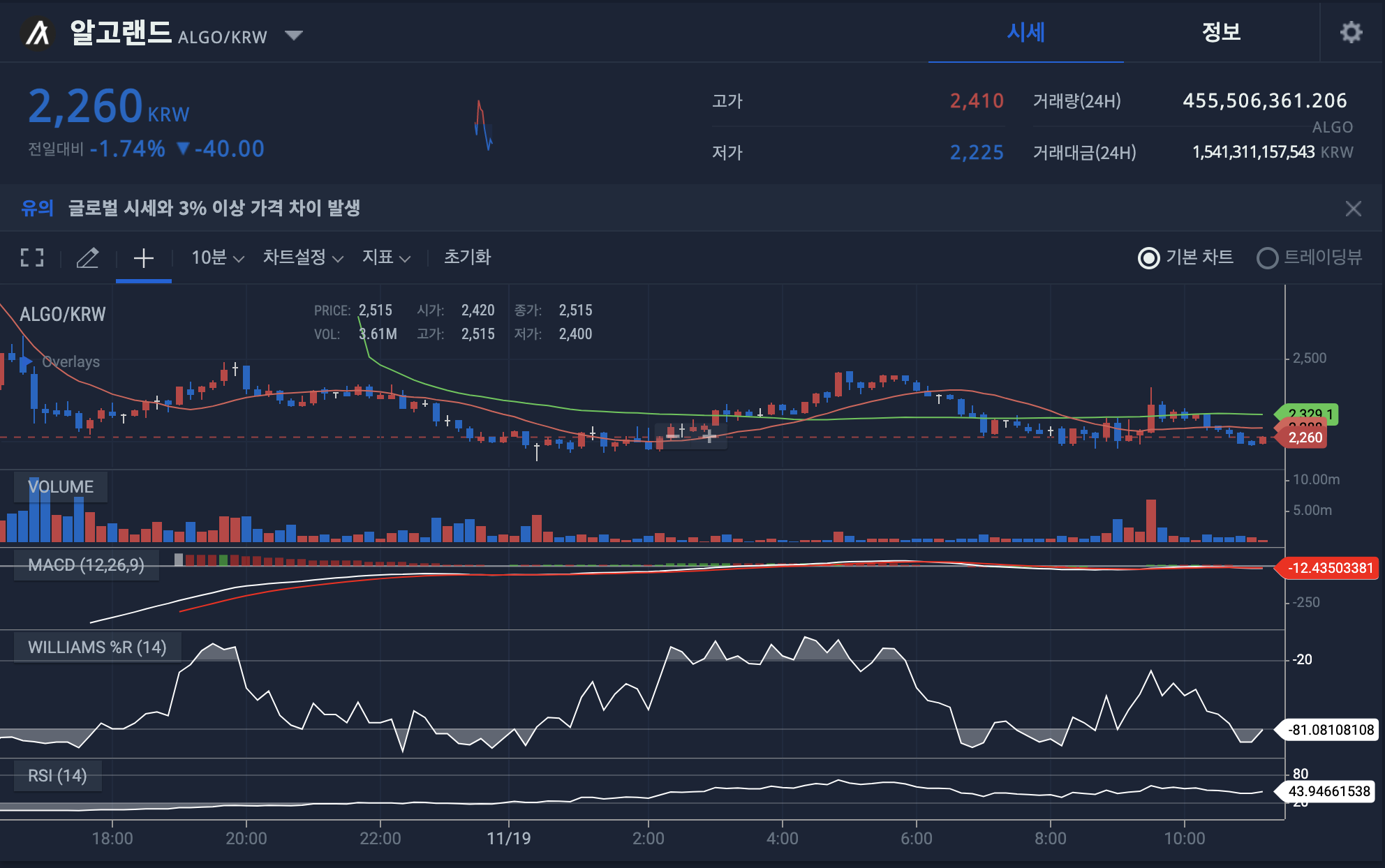 오늘의 급등 예상주는 알고랜드(ALGO)가 올라왔는데 이유는 상장된지 얼마안되서 주류 관련 코인으로 시초에 바로 급등했고, 수급이 어느정도 들어오면 가격이 빠지면서 아래 안정된 흐름이 예상된다. 대부분의 코인 시장은 상장되면 매수자가 몰리면서 엄청나게 급등하는 경향이 있는데, 부디 시작하자 마자 정신없이 치고 잘 빠지는 전략을 구사했기를 ...