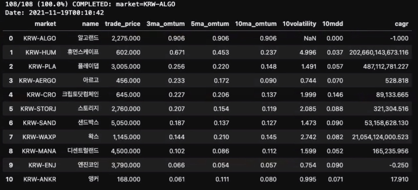 2021년 11월 19일에 분석해서 선정된 종목은 총 11개 였다.