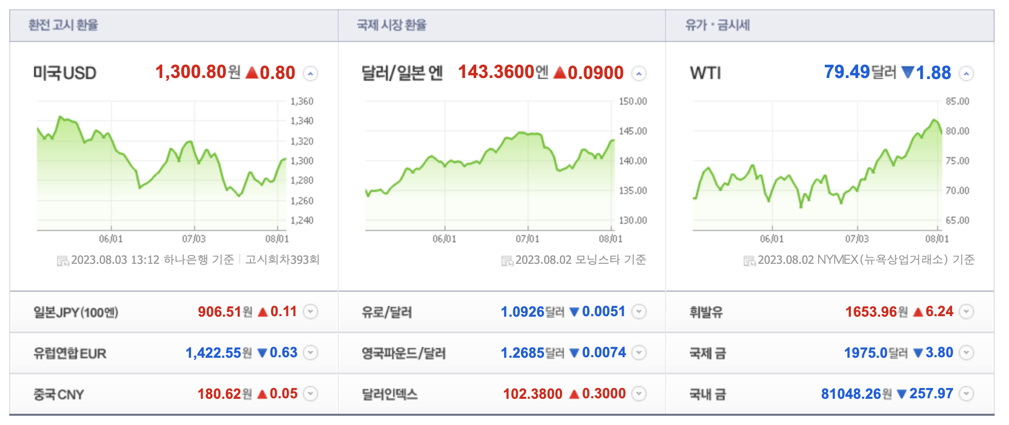💠 미국 신용등금 강등여파...환율 상승에도 주식시장은 불안정한 상태 [날짜: 20230803]