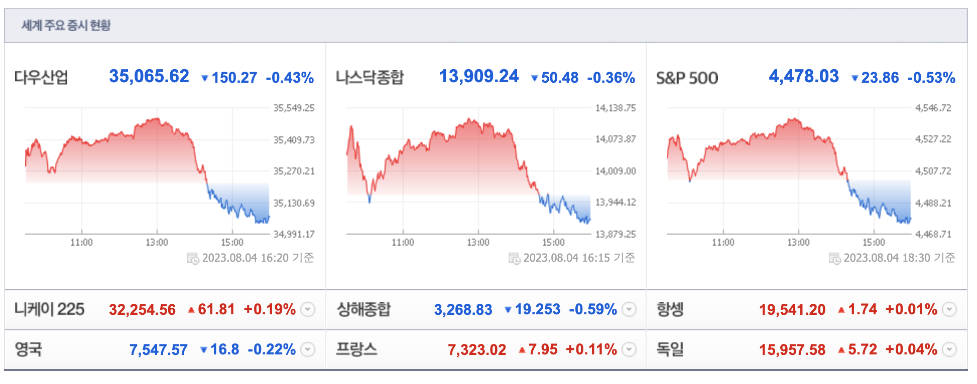 | 📰 경제뉴스 요약 💠 미 신용등급 강등, 아시아증시 하락 예상 (0) | 2023.08.02 |